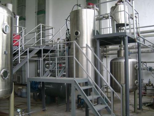 将药材投入提取罐内,加入5—10倍(根据工艺要求)的溶剂如水、乙醇、甲醇、丙酮等(根据工艺要求)。开启加热系统,使提取液加热至沸腾20--30分钟后,将三分之一的提取液抽入浓缩罐。关闭提取罐系统与夹套热水,开启浓缩系统与加热系统使浓缩汁温度保持在80℃左右,真空度保持在-0.05到-0.09Mpa,浓缩时产生的二次蒸汽经过冷凝器与冷却器变成冷凝液回流至提取罐做新溶剂加入药里,新溶剂由上而下通过药材层到提取罐底部,药材中的可溶性成分溶解于提取罐内溶剂,提取液经抽滤管抽入浓缩罐,浓缩产生的二次蒸汽又送至提取罐做新溶剂,形成新溶剂回流提取,直至完全溶出(提取液无色)浓缩继续进行,直至浓缩成需要的比重药膏,提取罐内的无色液体可下次复用,若是有机溶剂提取,则先加适量水,开直统与夹套热水,回收溶剂后,将渣排掉。